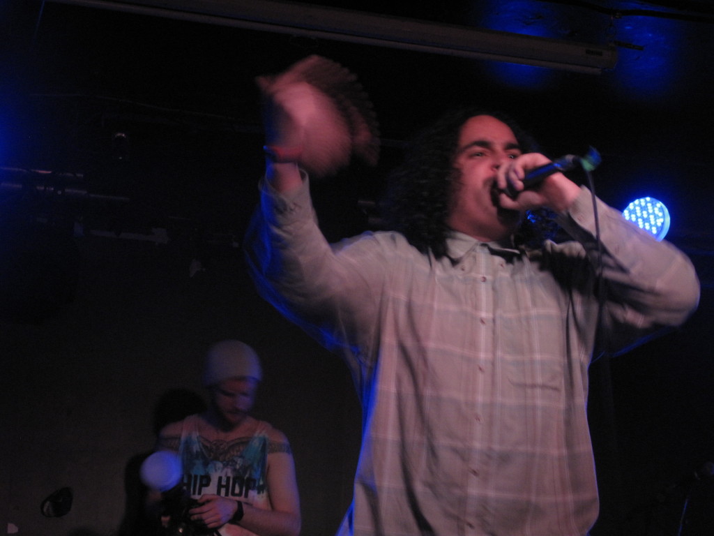 Before a small pause in the program, Sully invited the second group of the night to come up. A trio known as The Adding Maching took to the stage. E.on, Defckon & R.A. the ADDwolf didn’t take in a single breath as they boomed through a fast-paced set — it was all exhalation. Backed by J2xF on the beats, they barreled through stage-thundering dance moves and jumped into the crowd to start a little pit. Their rhymes were so plentiful, so tightly packed, it was alliteration.